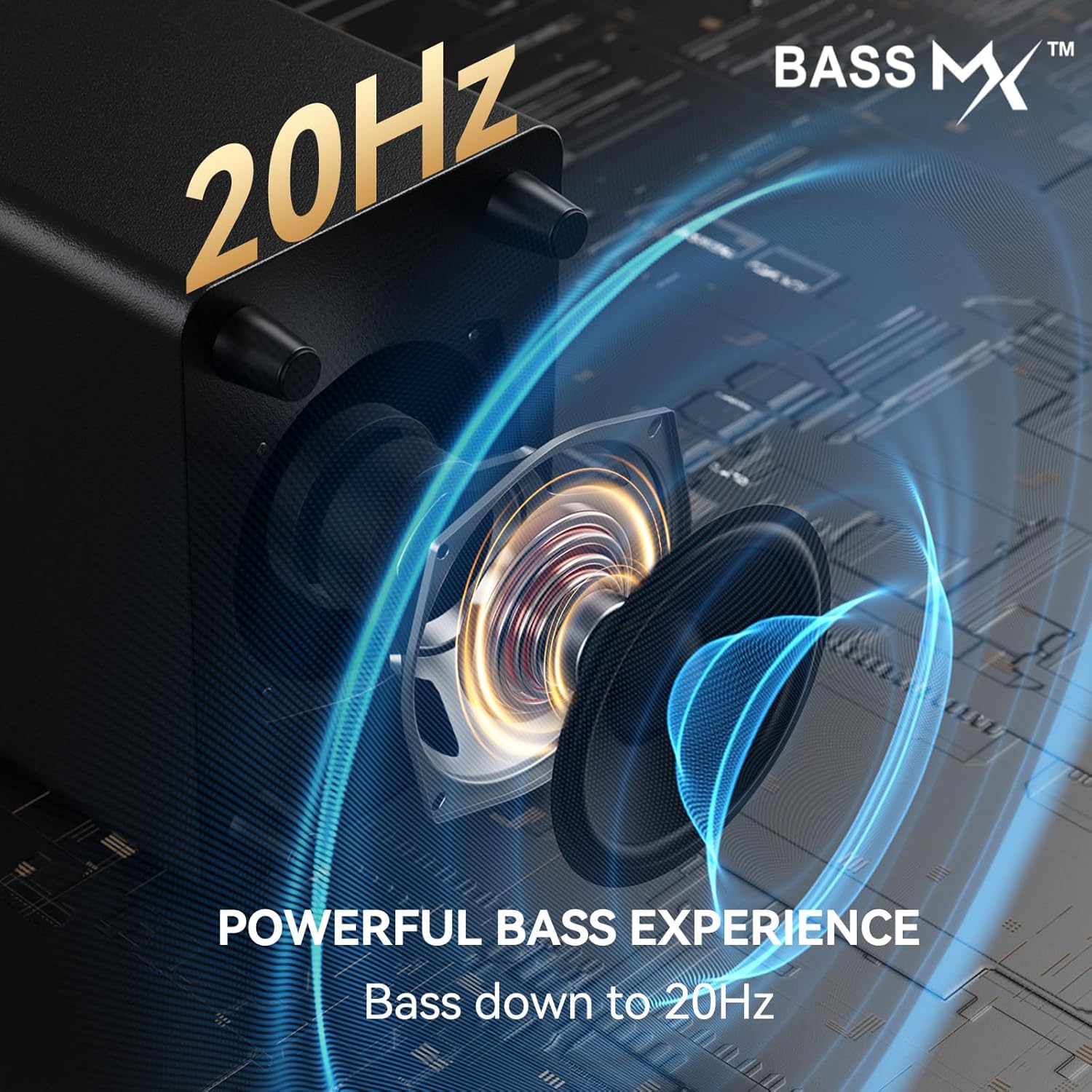 - Deep Bass Sound Bar for Smart TV:BASSMX tech and 25" wireless subwoofer deliver 30Hz explosions/engine rumbles. Balanced treble/mid/bass for action movies and music.